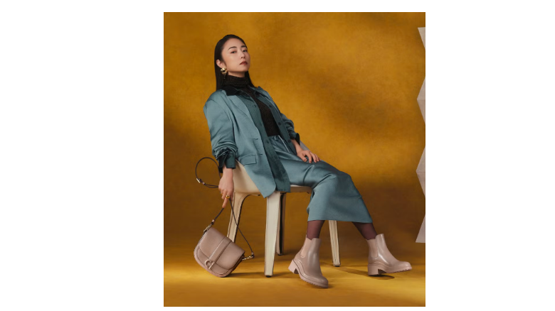 コール ハーンの秋冬コレクションを身に纏う女性。クラシックなスーツとモダンな小物で上品なコーディネートが完成。https://www.elle.com/jp/pr-stories/promotion/g45431960/f-colehaan-2310/