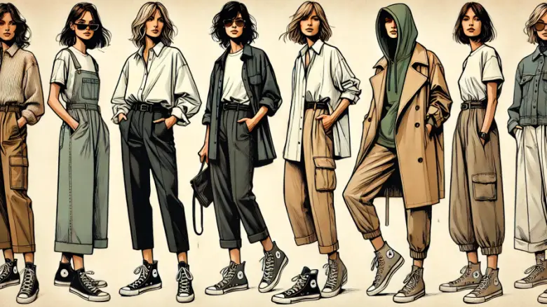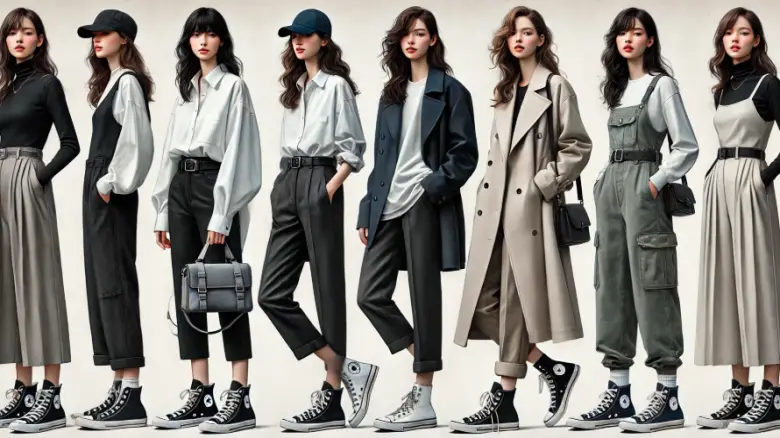 - ワイドパンツ×スウェット×コンバース → トレンド感のあるリラックススタイル