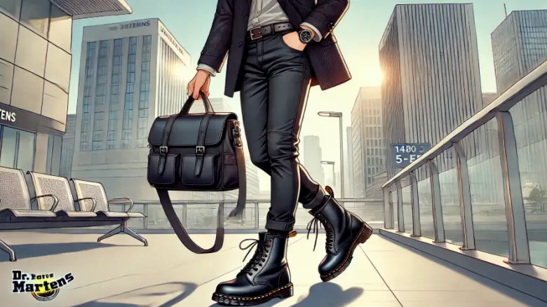 | 靴の選び方 | 黒やダークブラウンのマーチンを選ぶと足元が引き締まり、全体のコーディネートが洗練される。 | |