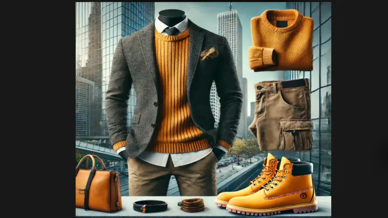 ティンバーランドのイエローブーツに、チノパンツやテーラードジャケットを合わせた洗練された都会のスタイル。オックスフォードシャツとウールセーターでカジュアルながらも上品な印象に。