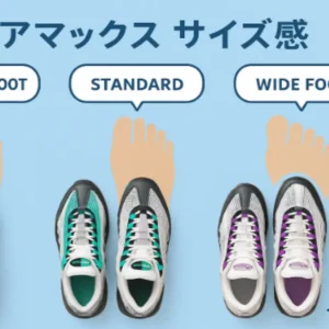 このように、エアマックス95のサイズ感は他モデルと比べて特徴的です。自分の足の形や履きたいスタイルに合わせて、慎重に選ぶことが満足のいく一足につながります。