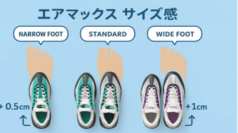 足幅タイプごとのおすすめサイズアップ目安が一目で分かる「エアマックス95サイズ感ガイド」