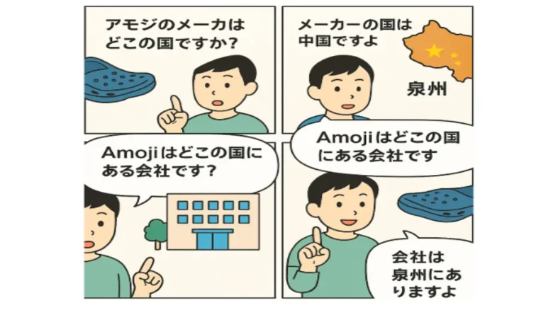 Amojiのメーカーは中国に所在し、主に海外向けにサンダルを製造・販売している企業です。デザインや展開商品はクロックスに似ているものの、独自の設計思想も取り入れています。